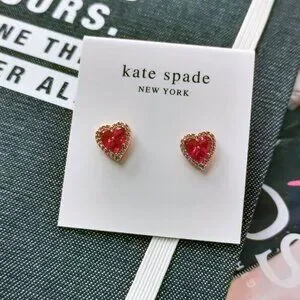 New Rose Gold Kate Spade Spell It Out Heart Red Stud Earrings