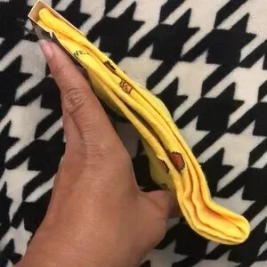 Size-men’s shoe size 6-12, cuffed top, crew sock, unisex, yellow base with orange, red, brown, black and white colors. Cuffs are yellow with yellow heels. Brand new, never worn.