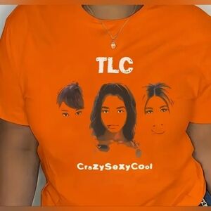 Perfect color for the fall weather. TLC was a classic 90's group, so this shirt definitely has nostalgia characteristics. Its comfy and loose enough for a lounge day or can be dressed up for a casual everyday wear. This top is new, so there are no wear or tear marks. It's in perfect condition. Old R&B 90's graphics are back in, FINALLY!