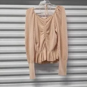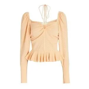 $495 NWT Ulla Johnson "Leland" top in pointelle knit with ruching and puff sleeves.