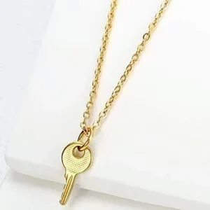 NWT 18K Gold Plated Stainless Steel Trendy Key Pendant Necklace
