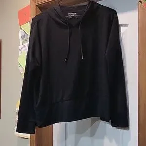 Mondetta Hoodie Shirt Womens Medium Black Sweatshirt Stretch Long Sleeve