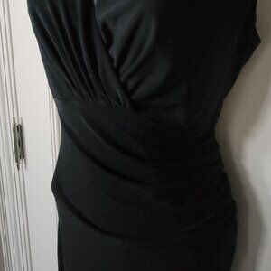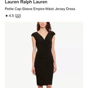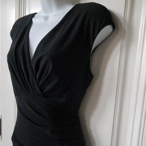 Ralph Lauren Dress, EUC, Size 12, black, with capped sleeve, shoulder pads for some structure, side ruching, covered front slit. See pics for further description. This a not a petite dress per stock pics that was used, it's the same dress in a regular 12. No visible marks, stains or tears. In like new condition!! P to P 18" + stretch, L 39"