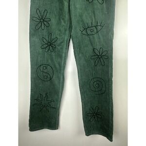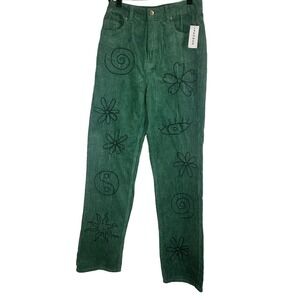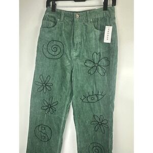 NWT PacSun Green Corduroy Embroidered Boyfriend Jean Doodle Baggy Womens Size 28