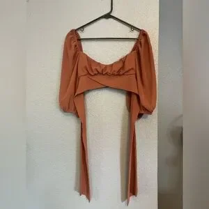 Blush BJ | Medium | Tie-Back/ Open Back | Crop Top | Bell Sleeves