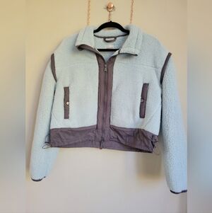 NWOT never worn never washed measurements are totally approximate no flaws that I can observe color is lt.blue/grey so soft and comfy warm. size XS black line through brand tag to prevent store returns for full price listed as a teddy jacket because it's kinda that texture. Stored in a plastic FP shipping bag. according to my approximate measurements this may run larger, relaxed