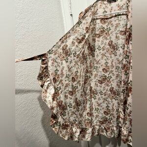 SHEIN Allover Floral Print Belted Ruffle Trim Wrap Hem Dress Size S