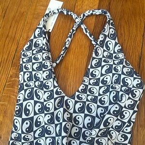 NWT SKATIE x Salty Blonde Zoe one piece. Barbados Yin Yang print, cross cross adjustable straps and cheeky bottom. Best swimwear around!