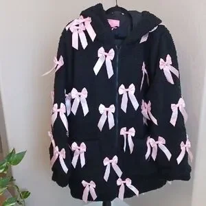 SUGAR THRILLZ 2X BLACK SERPA JACKET WITH PINK BOWS ALL OVER