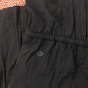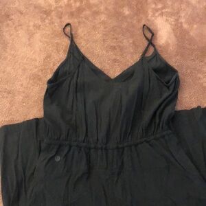 Excellent used condition Lululemon black, wide leg jumpsuit. Size 8. Has pockets! Super cute. Worn once or twice.