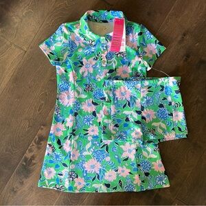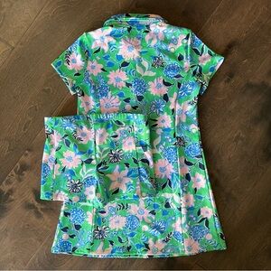 Dress up your little one in the UPF 50+ Girls Mini Frida Polo Dress. This polo dress features a scalloped placket, pockets and undershort with logo button hardware, all made with our sustainable Studio Stretch fabric. Our Studio Stretch boasts UPF 50+ and wicking technologies. Offering superior coverage, breathability, and 4- way stretch comfort, you'll have freedom of movement when you're on the go or taking it easy.