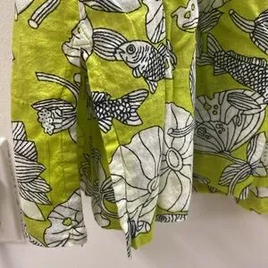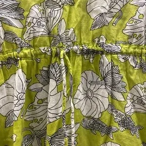 Green and White Printed V-Neck Sheer dress M