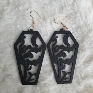 New Black Wooden Halloween Bat Forrest Earrings