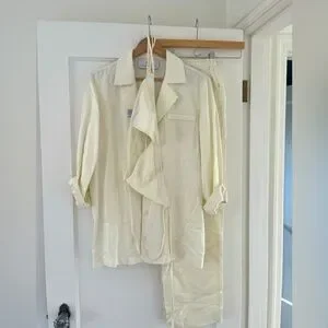 Used on vacation, mark on front of pants as shown. Both tops are small and pants are medium. Off-white color.