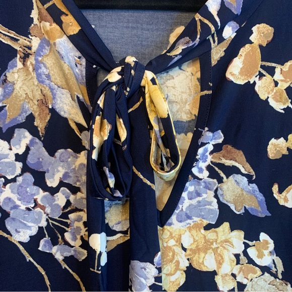 NWT Lauren Ralph Lauren Floral Tie-Neck Stretch Jersey Long Sleeve Plus, Size 2X