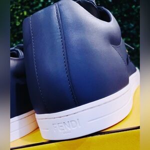 Karl Lagerfeld was an icon in his own right and has been bringing his playful design vision to the designs of the Roman house of Fendi for over fifty years. Expect adorable Karlito bag charms in fluffy fur, angry little monster motifs and clean, swoon-worthy ready-to-wear pieces. That look exquisite on you whether you’re opting for a tailored look or a casual outfit. Not unlike these rare and unique Fendi storm Butterfly Bag Bugs Low-cut leather sneakers. That feature Fendi’s signature collection Monster butterfly motif subtly woven and dispersed into the front and sides of goat and calf skin leather upper of each sneaker. And will look impeccable whether you choose a tailored look or a casual outfit alike. Storm colored buttery soft leather and cushioned mesh line the insoles and inner layers of each shoe. Margom rubber soles are affixed and stitched to the footbed for durability, comfort and quality - Made in Italy