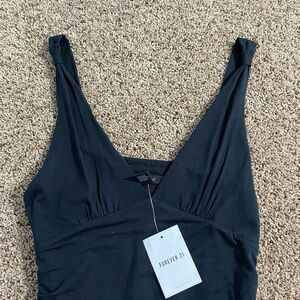 NWT Forever 21 Black Ruched Bodycon Dress Size Small Women’s V Neck