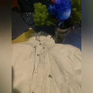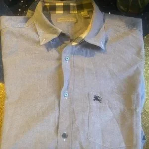 BURBERRY BRIT MEN’s LIGHT GREY-BLUE VINTAGE AUTHENTIC FULL-SLEEVE Shirt RARE LUX