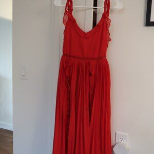 LULUS - Never a Dull Moment Tie-Strap Pleated Dress (XS) in Red