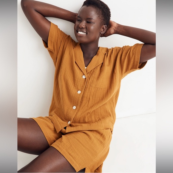 NWT Madewell Lightestspun Oversized Short Pajama Set Antique Gold Size Large