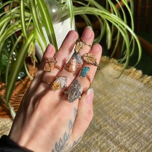 what is the blueish stone on index finger?