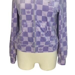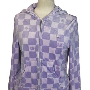 Juicy Couture Y2K Purple Squares Logo Velour Hooded Zip Hoodie Jacket Sz M