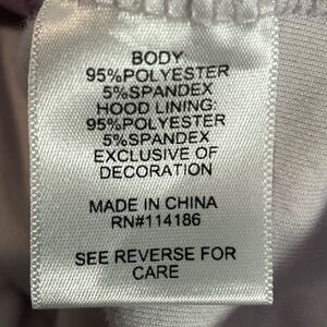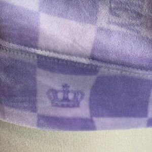 Soft velour with front pockets and zip front. Purple squares and logo accents. Approx measurements pit to pit 19, length 21 and sleeves 24 inched. Lovely condition.