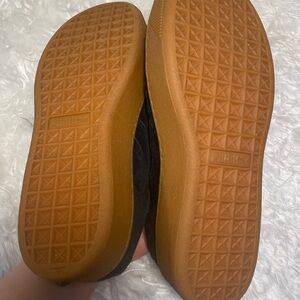 PUMA hightop sneakers with black satin laces, size women’s 7.5. Only worn two or three times, so wear is minimal. Very comfortable.