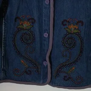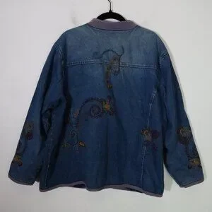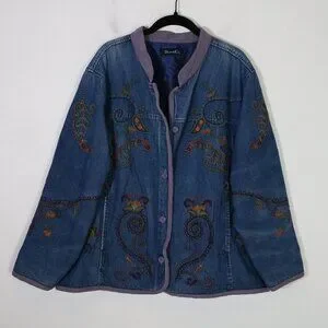 Vintage Denim Co Chore Jacket Womens XL Embroidered Paisley Boho Oversized Coat