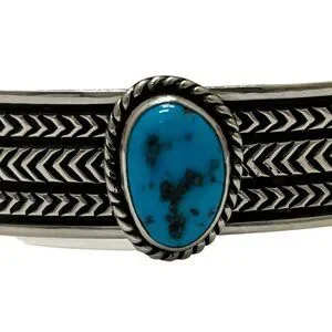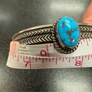 925 Sterling Silver Turquoise Artist Signed Harold J. Cuff Bracelet