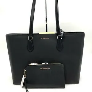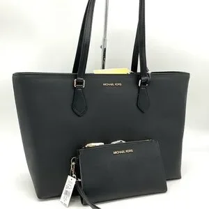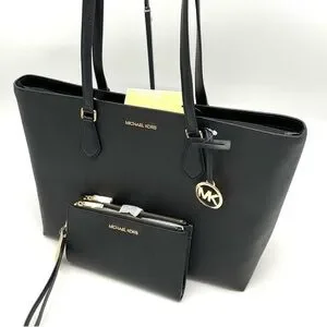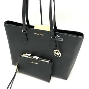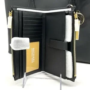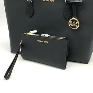 Michael Kors Bag Large Sheila Mf Tote Bag & Large Double Zip Wallet Black/Gold