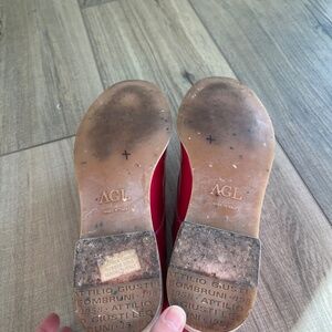 AGL pink patent leather shoes, made in Italy. Such a cute shoe to brighten any outfit. In very good, used condition. There is some slight darkness/staining on the toes of the shoes, disclosed in photos. Barely noticeable in person. Size 38 1/2 US 8