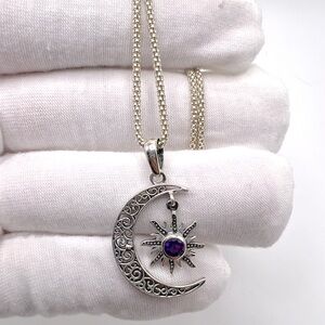 Genuine Amethyst .925 Sterling Silver Moon Necklace