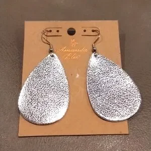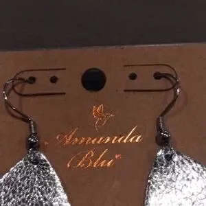Silver Teardrop Dangle Earrings- Leather - Amanda Blue