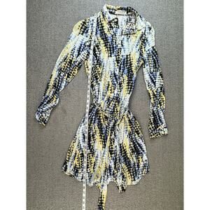 Freebird Amina Shirt Dress Long Sleeve Tie Dye Belted Yellow Blue Size XS