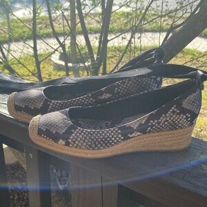 Tory Burch Heather Lace Wrap Up Espadrille Wedges - Size 6