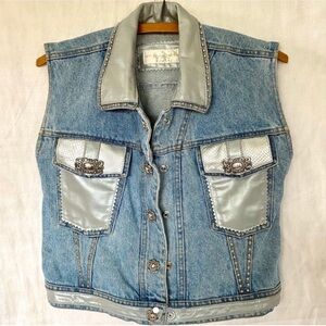 Vintage Biker Rockabilly Denim Pleather Vest.