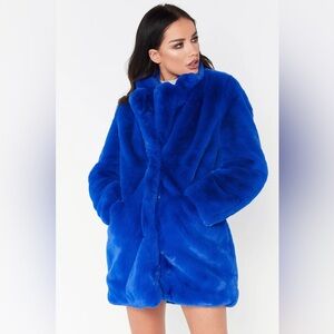 Cardigan Faux Fur Coat Blue NWT