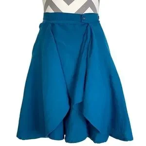 Mais Il Est Ou Le Soleil Linen Skirt Size 38 / 8 / Medium Teal Blue Faux Wrap