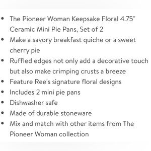 🌺 NWT The Pioneer Woman Keepsake Floral 4.75" Ceramic Mini Pie Pans, Set of 2