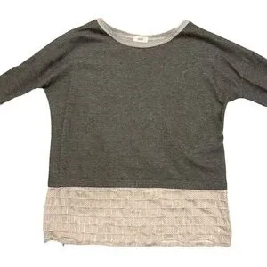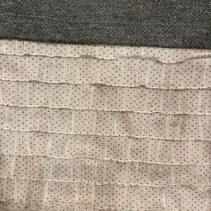 Super cute crew neck knit with polka dot (light pink and grey) on Ruffle hem. No size but fits like medium, maybe large