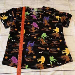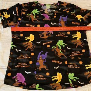 Scooby Doo Scrub Top Halloween Theme Womens Size Medium Uniform Shirt Mystery. Good preowned condition. Please see all pictures for reference, condition and measurements.