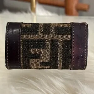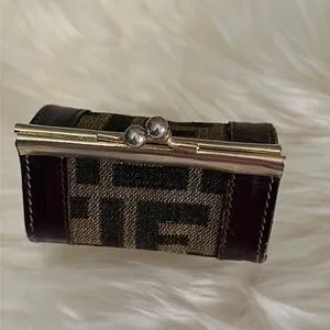 π₯ RARE Authentic Fendi Roma Kisslock Vintage Coin Purse in Zucca Monogram Canvas & Leather π₯