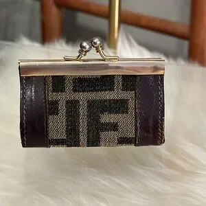 π₯ RARE Authentic Fendi Roma Kisslock Vintage Coin Purse in Zucca Monogramπ₯