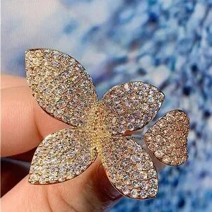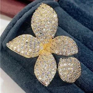 Adjustable Gold Four Leaf Clover Zircon Ring