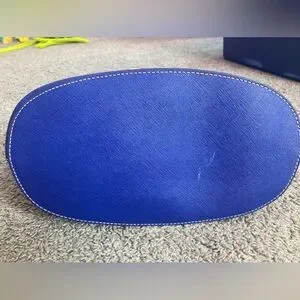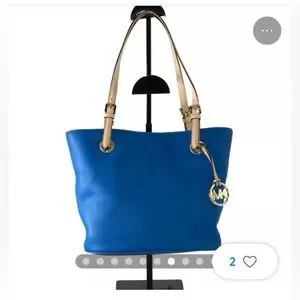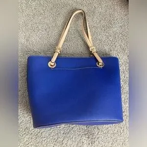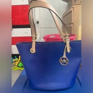 Worn 2 times, gently used Michael Kors purse, royal blue with beige straps and gold accents
