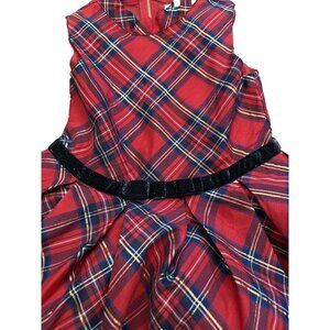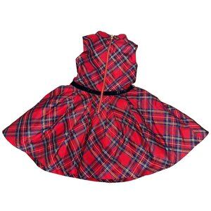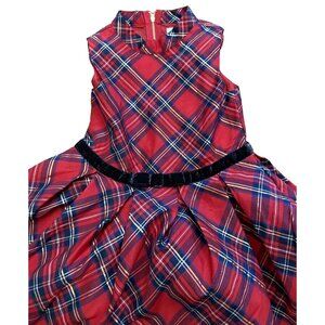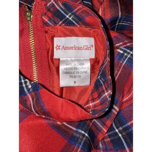 American Girl Red Plaid Metallic Black Velvet Belt Size 6 Girls Holiday Dress