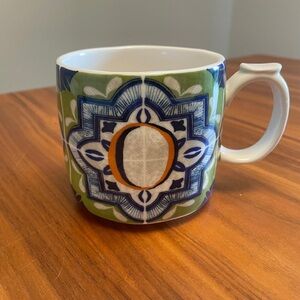 Anthropologie Festive Bistro Tile Monogram Letter ‘O’ Mug NEW