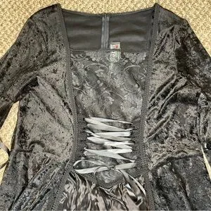 Vintage 90s Lip Service Crushed Velvet Lace Up Corset Maxi Dress - Black