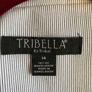Tribella Tribal Blazer Size 14 Black on White Pinstripe Jacket 3/4 Sleeve Stretch Lined